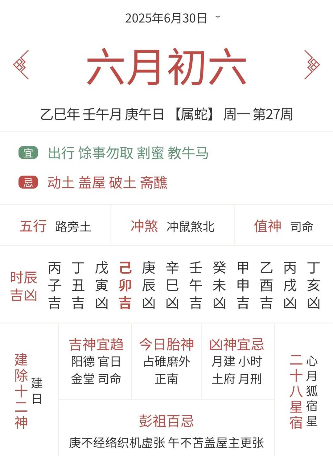 6月30日黄历