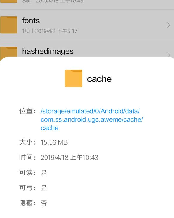 进入到抖音目录 /data/user/0/com.ss.android.ugc.aweme/cache/cachev2/
