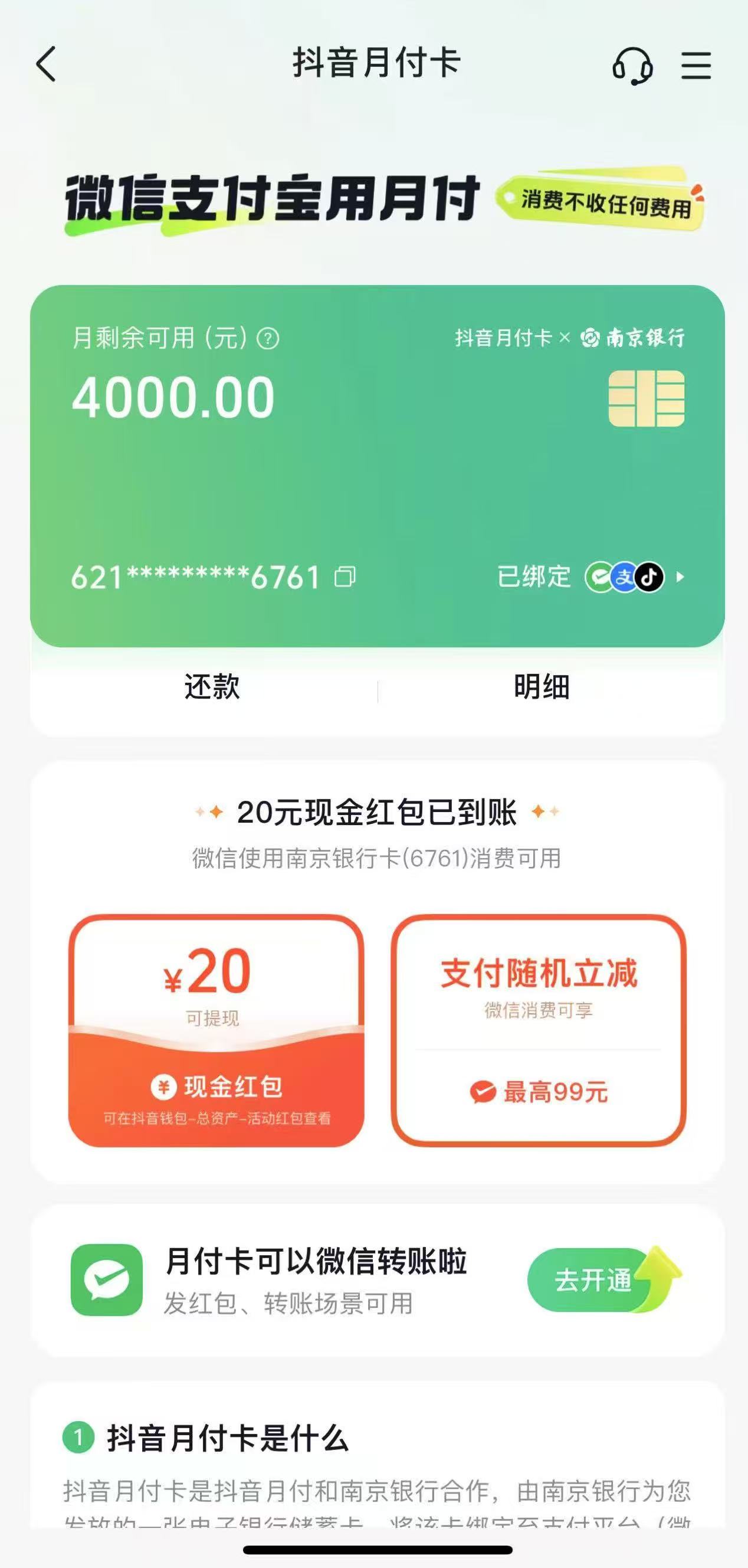 抖音秒到20现金人人可撸 值得一看 13小时前 编辑 admin顶级老司机 取消关注 关注 私信 抖音秒到20现金人人可撸 活动方法: 抖音-我的钱包-月付开个月付卡-直接20到账 给TA打赏 共{{data.count}}人 人已打赏