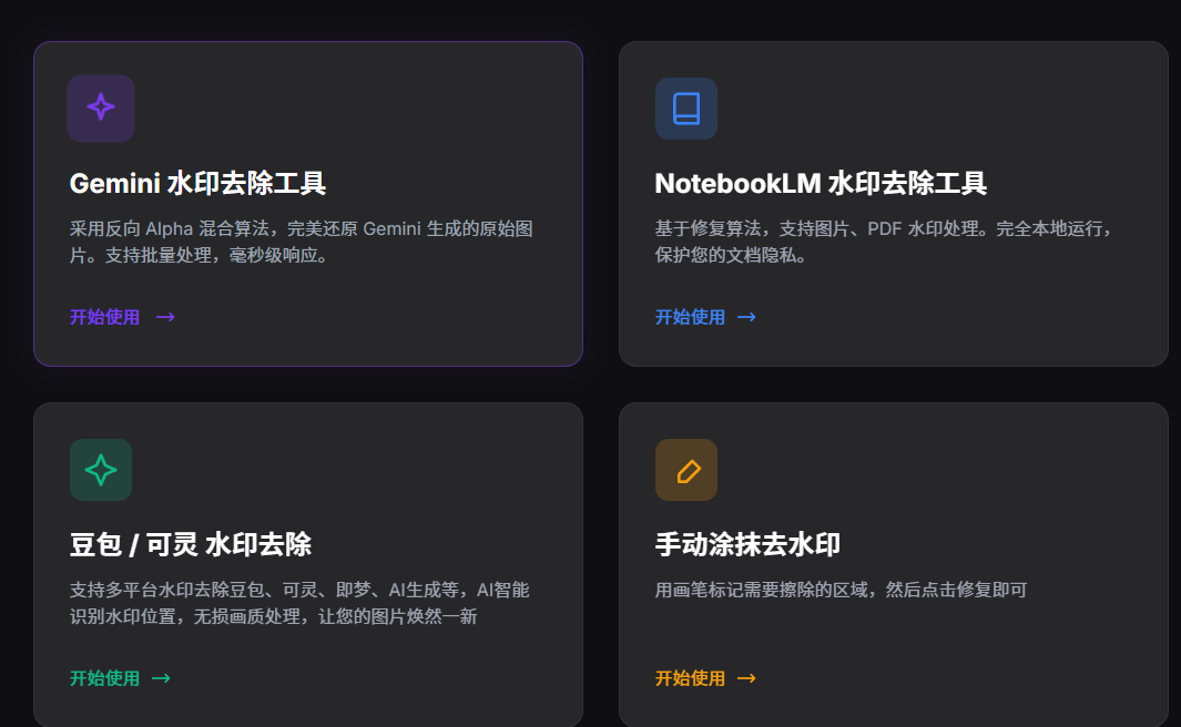 网站介绍:移除Gemini(Nano banano)图片水印,NotebookLM PDF水印,图片水印。
