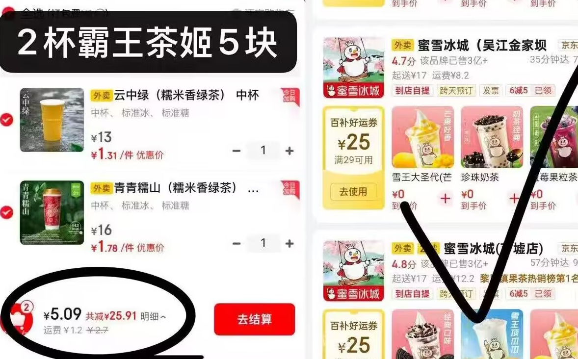 3️⃣然后就做到29-25 两杯霸王茶姬只需要5块-8块 可以预定明天送,然后明天还能领