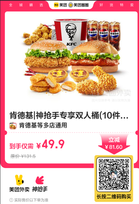 肯德基69.9r到手12件全鸡桶 三个汉堡🍔+全鸡🐔+小食🍗 可以够3-4人吃,可以先去囤下 可以外卖无配送费!到期随时退 值得一看 24年9月7日 编辑 admin顶级老司机 取消关注 关注 私信 肯德基69.9r到手12件全鸡桶 三个汉堡🍔+全鸡🐔+小食🍗 可以够3-4人吃,可以先去囤下 可以外卖无配送费!到期随时退 bug 先锁单‼肯德基全家桶69 ? 有效期半个月过期会自动退! 买了后去美团我的红包卡卷使用 领取入口: 给TA打赏 共{{data.count}}人 人已打赏