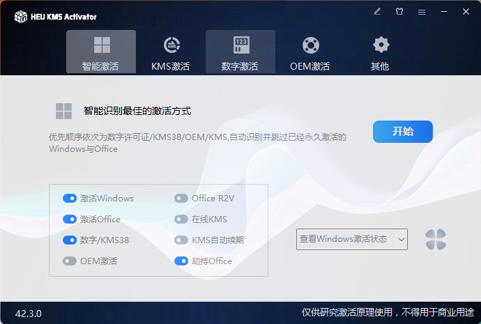 7、智能激活、激活成功率高、支持静默参数、几乎支持所有 Windows/Office 所有版本