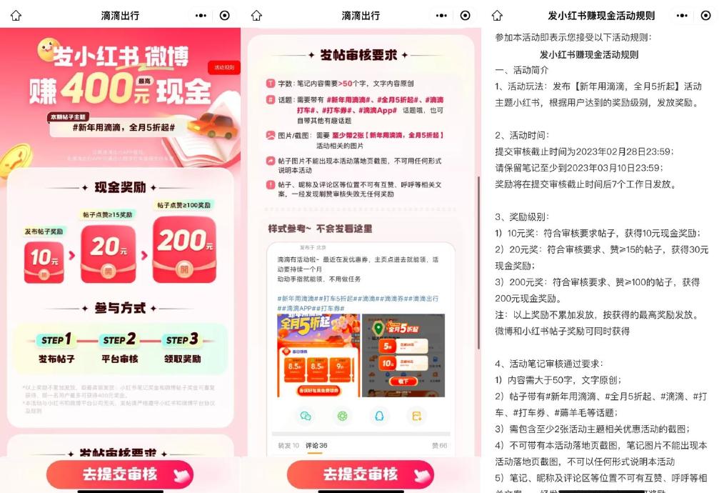 滴滴出行发布帖子领200元红包 线报 2月16日 admin顶级老司机 取消关注 关注 私信 滴滴出行发布帖子领200元红包 挺简单的,有空可以去发一下! 微信打开地址->根据页面提示发小红书或微博->提交审核通过后领10元红包,达到累计赞最高再得220元红包