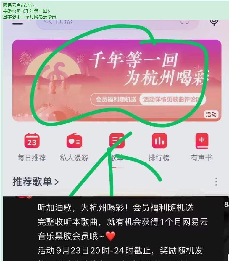 网易云网易云会员一个月 网易云点击这个 完整收听《千年等一回》 基本必中一个月网易云绘员